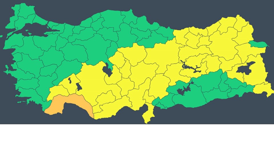 35 il için sarı, Antalya için ise turuncu kodlu uyarı yayınlayan MGM, Akdeniz’in iç kesimleri, İç Anadolu’nun güney ve doğusu, Doğu Karadeniz’in iç kesimleri ile Doğu Anadolu’nun kuzey ve doğusunda yer yer fırtınaya varan kuvvetli rüzgar beklendiğini bildirdi.